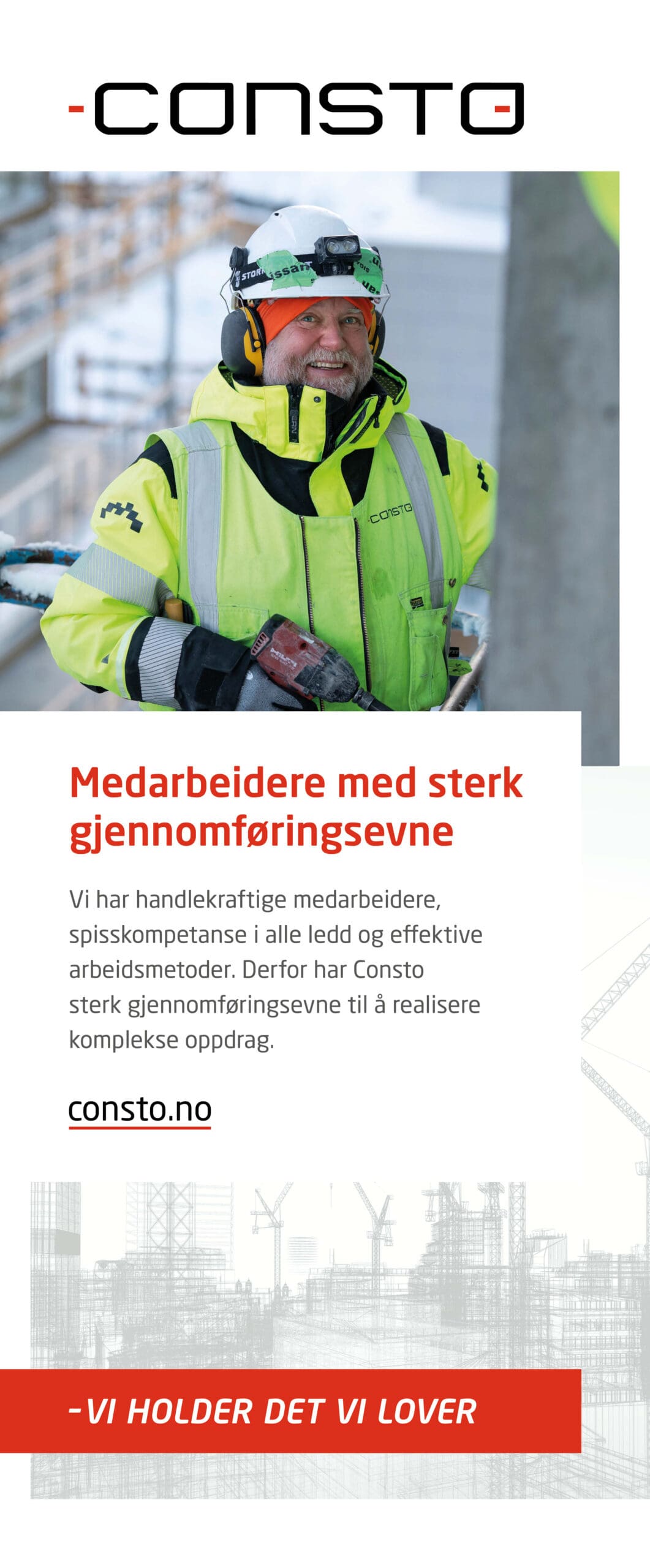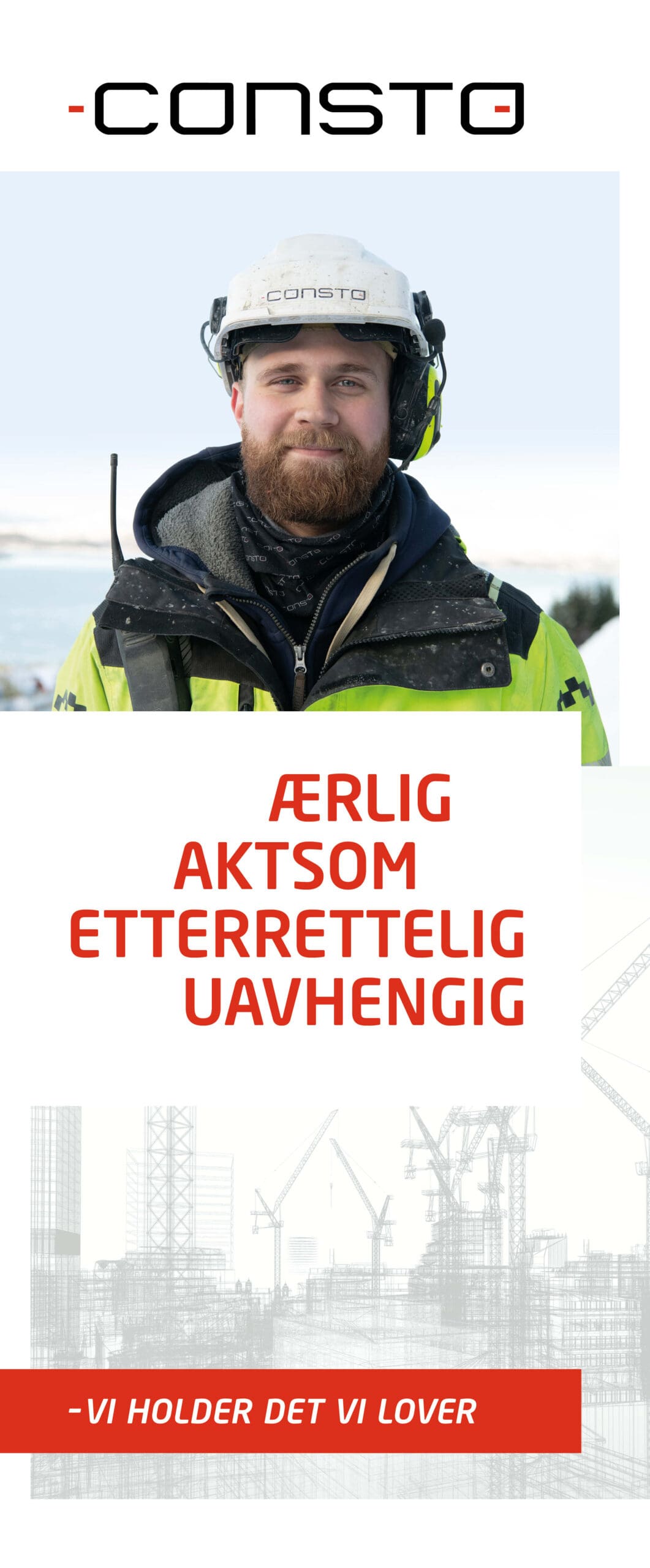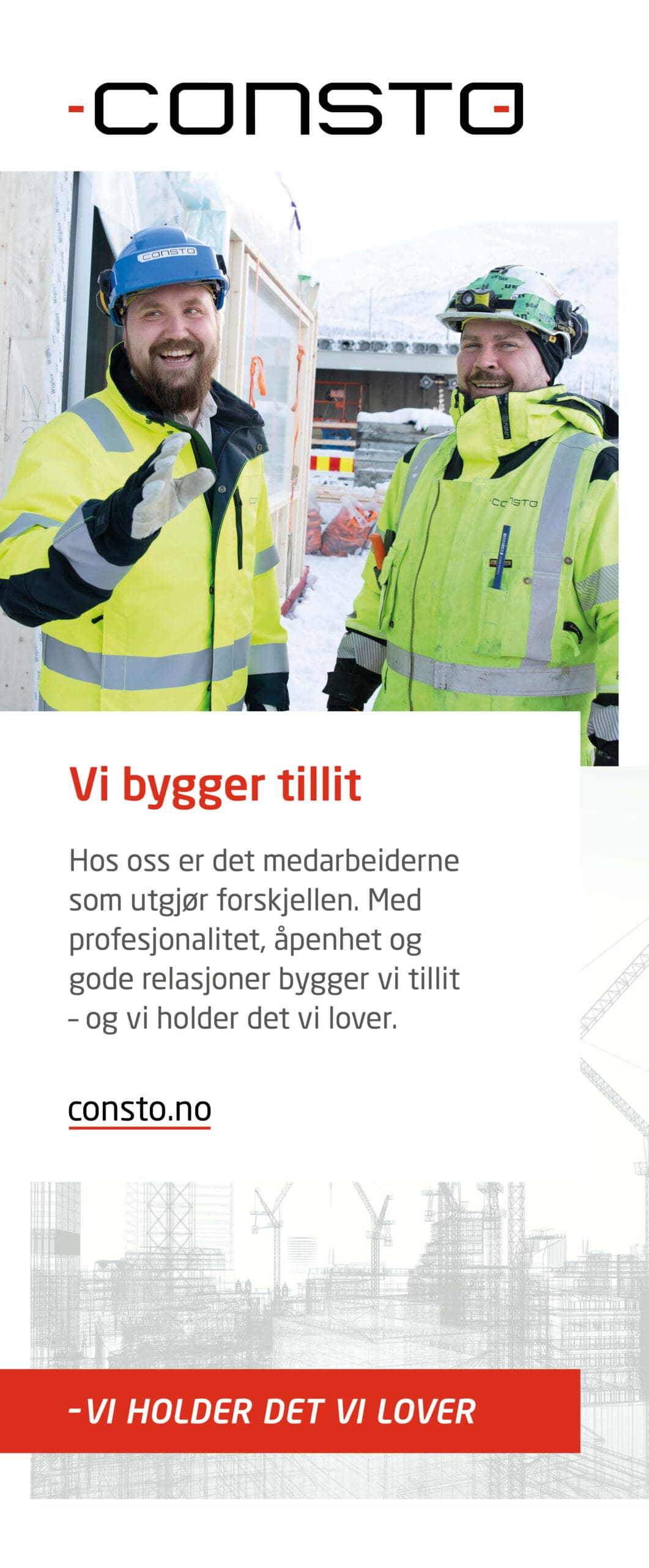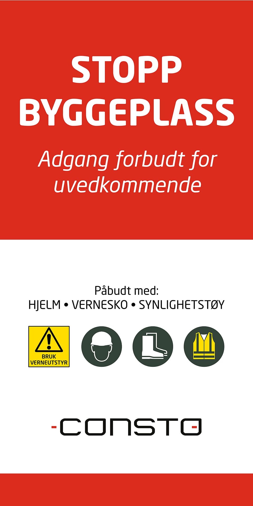 På byggeplassen skal Consto ha byggeskilt og bannere i tråd med profilen vår. Under finner du filer som ditt lokale trykkeri kan bruke som underlag til ditt prosjekt.
